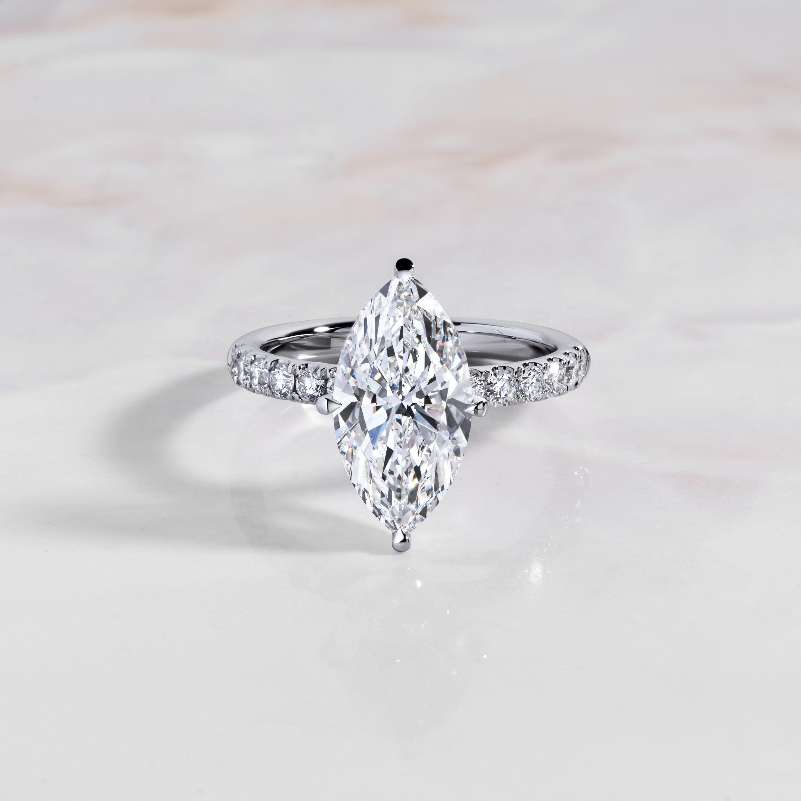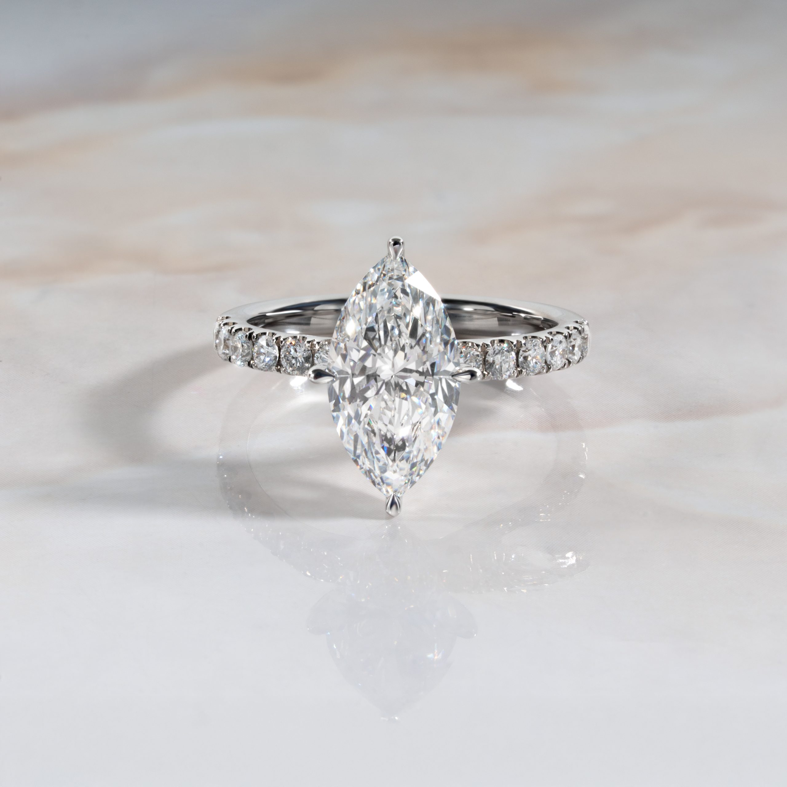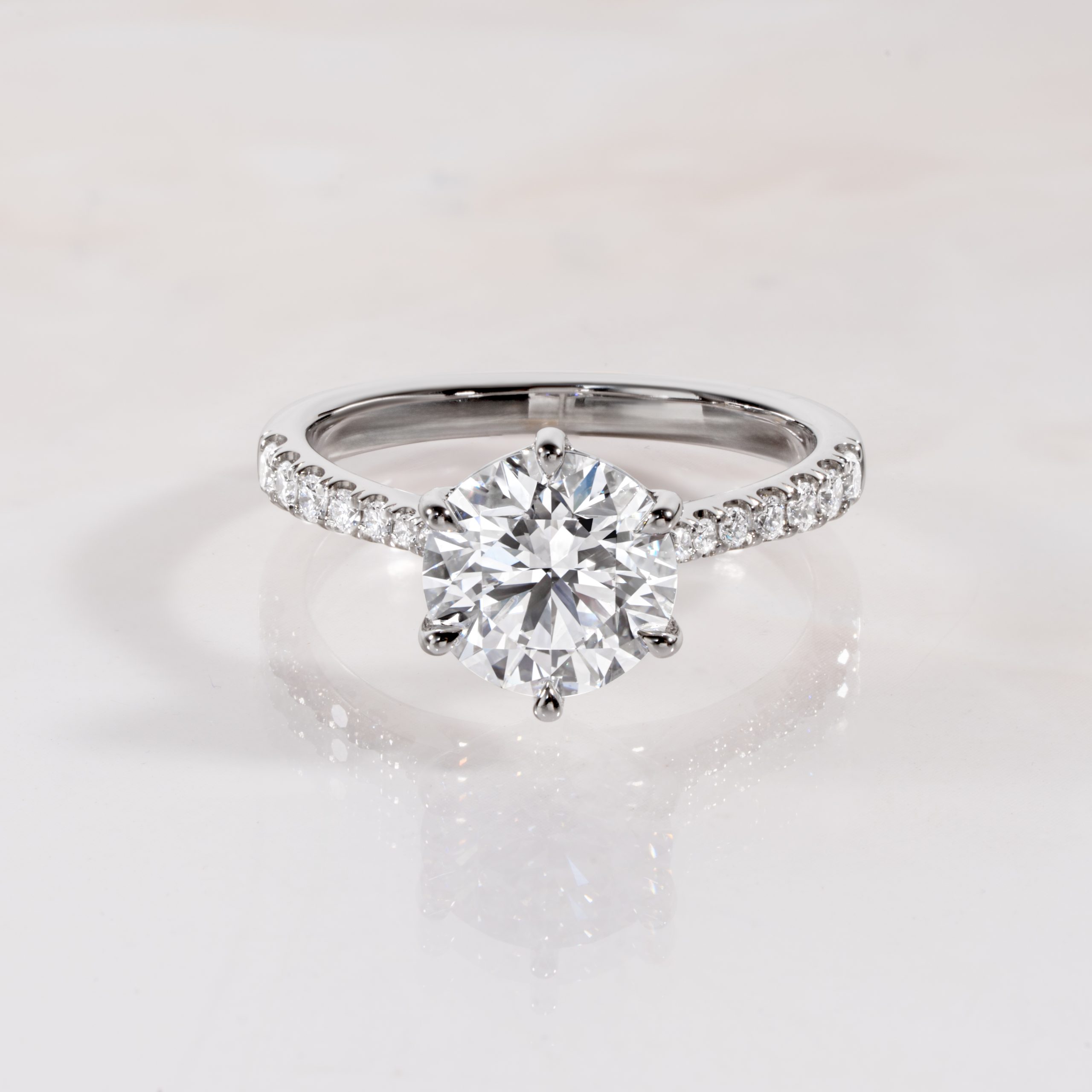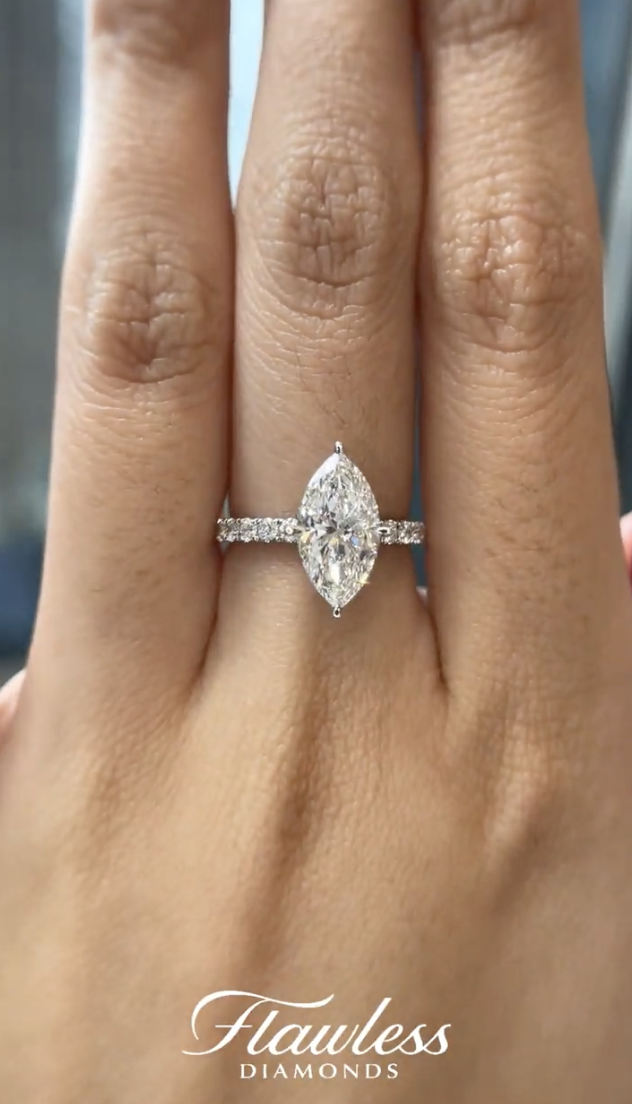 If you’re customizing a ring, select your favorite ring setting whether it’s plain, pavé, halo, three-stone or many others and match it to your exact ring size. View our size chart here.